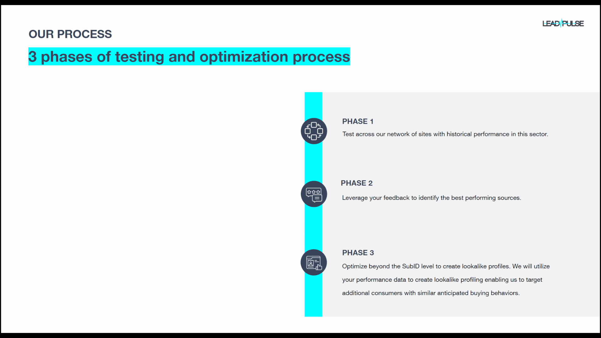 The result was a suite of presentations that felt polished, professional, and flexible- helping Lead Pulse bring their story to life in a way that connected with each potential client’s world.